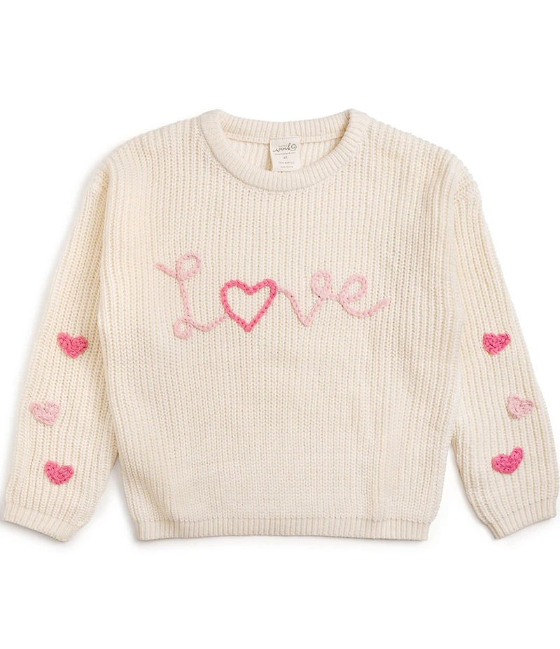 From Sweet Wink, this sweater features: Round neckline Long sleeves “Love” design and sweet embroidered hearts along the sleeves Pullover styling Acrylic Hand wash/tumble dry Imported.