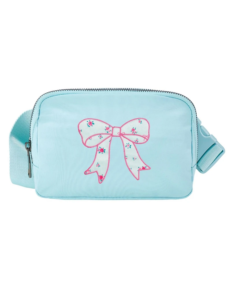 The Sky Floral Bow Patch Belt Bag is a playful, hands-free bag she ll adore! With a big, bright floral bow, it s perfect for treasures, snacks, or adding a pop of fun to any outfit.