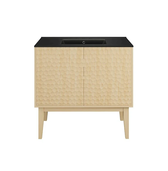 Swiss Madison 36" Freestanding Bathroom Vanity, Natural Oak, Black 3-Hole Widespread Sink Top
