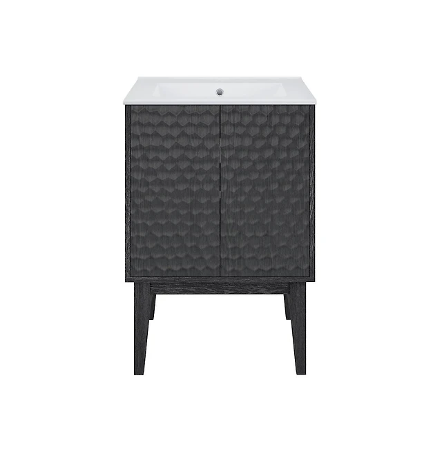 Swiss Madison Bosse 24" Freestanding Bathroom Vanity in Black Oak with Sink Top
