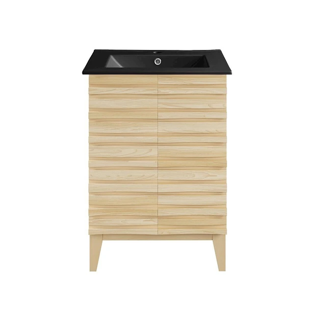 Swiss Madison Cascade 24 in. Natural Oak Bathroom Vanity With Black Ceramic Sink Top
