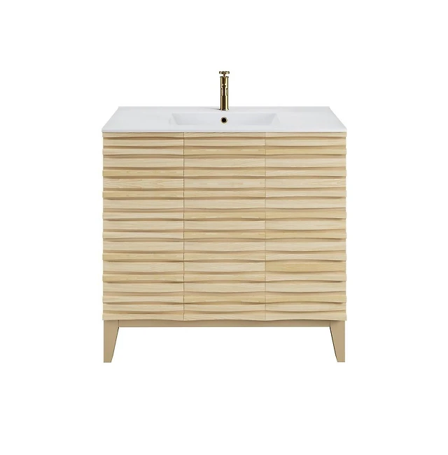Swiss Madison Cascade 36" Freestanding Bathroom Vanity in Natural oak with Sink Top