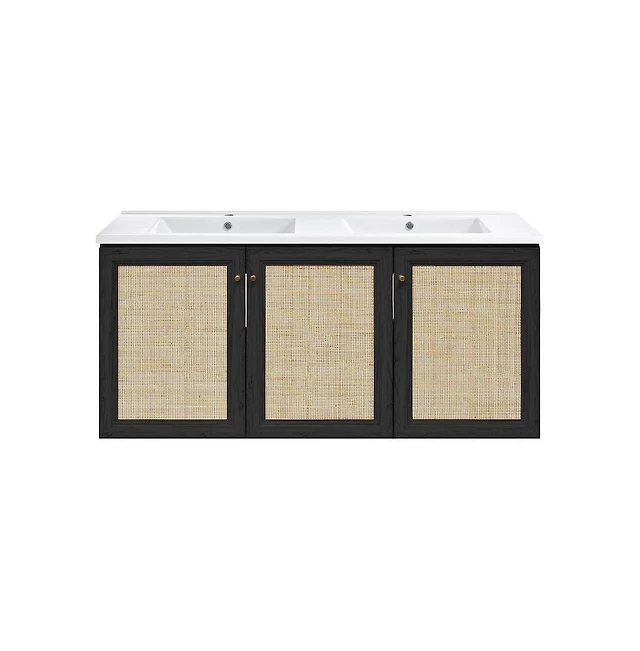 Swiss MadisonClasse 48" Wall-Mounted Bathroom Vanity in Black Oak with Double Basin Sink Top