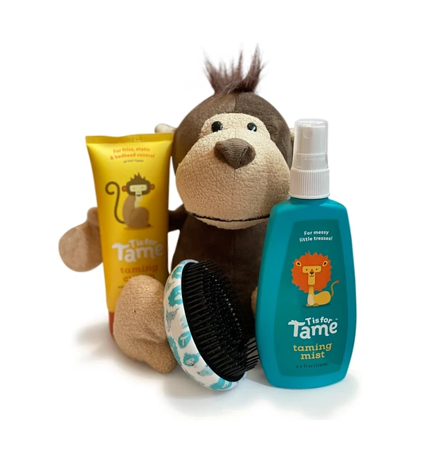 T is for Tame New Mom Hair Taming Gift Set for Kids with Plush Monkey