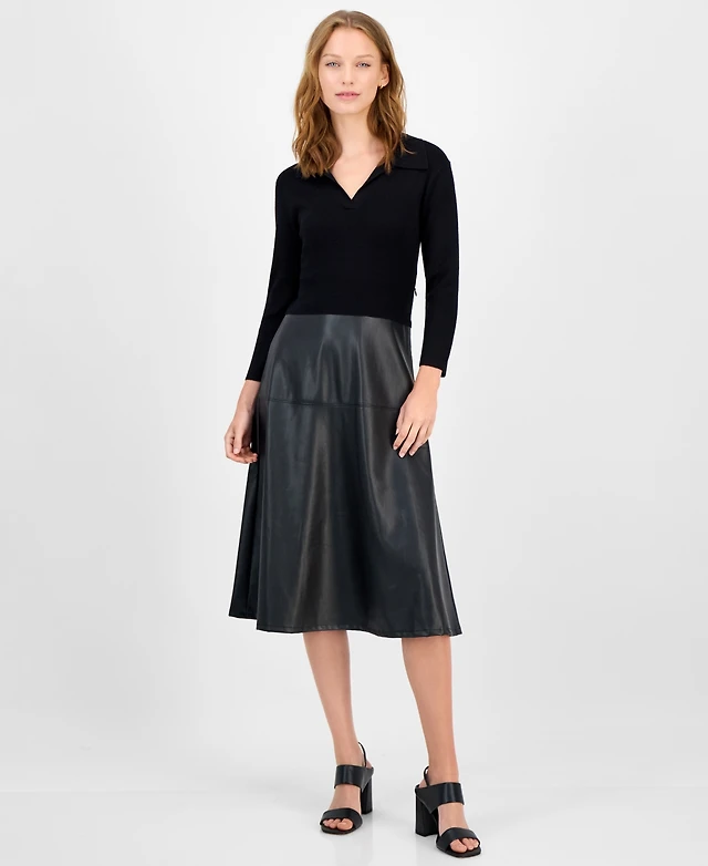 Steve Madden Women's Palermo Mixed-Media Bubble-Hem Fit & Flare Dress