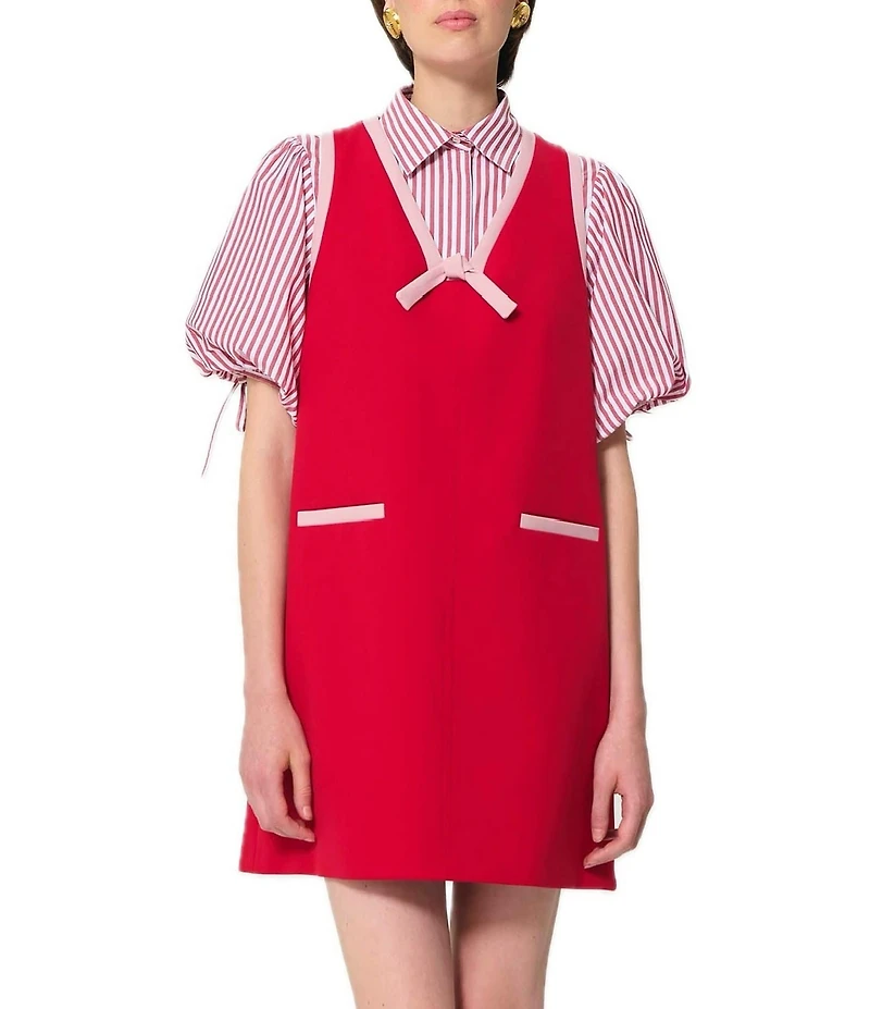 From Tara Jarmon, this dress features: Woven fabrication A-line silhouette V-neckline Sleeveless Front non-functional slit pockets Contrast trim detail Back zip closure Approx. 34" length Polyester/elastane; lining: polyester Dry clean Imported.