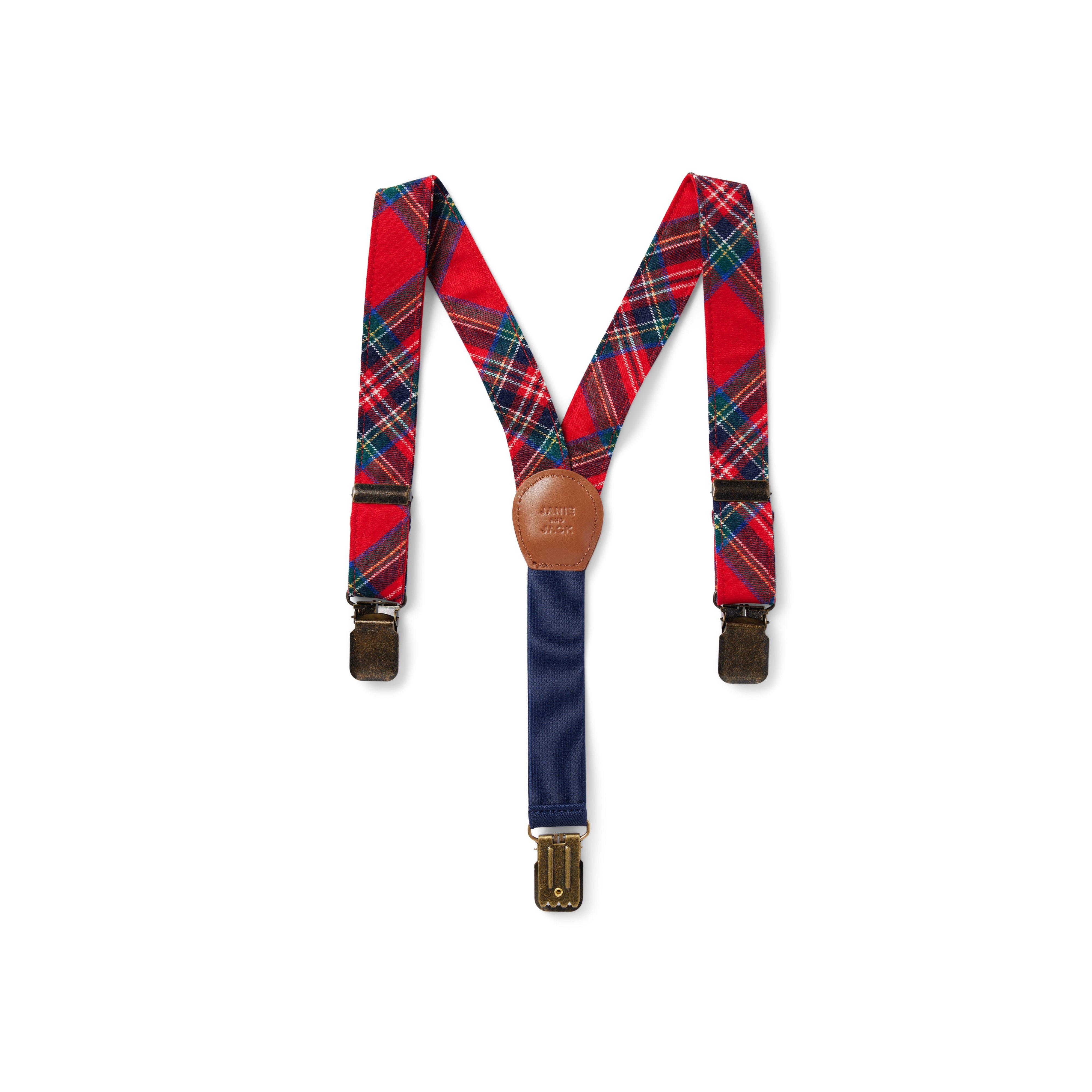 Classic and charming, our tartan suspenders are the perfect addition to their holiday look. 79% Polyester/21% Rubber Wool Tweed Clip-on With Adjustable Straps Matching Family Styles Available Spot Clean; Imported