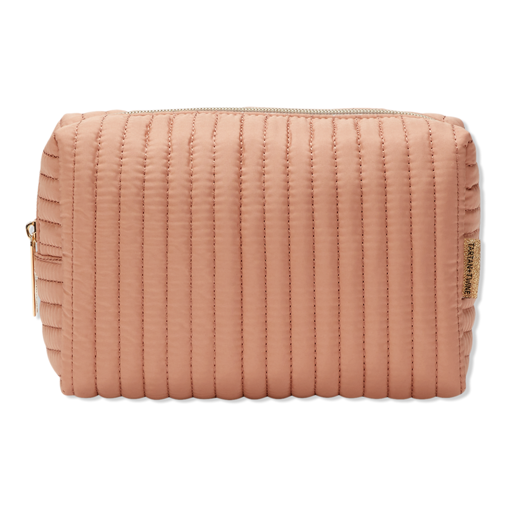 BTS BEIGE MEDIUM ORGANIZER. Features: Made of durable soft poly with a stylish vertical quilted exterior. One large zippered compartment for easy organization. Printed floral PVC lining thats wipe-clean friendly. Gold-tone hardware with zipper. 8 x 3.5 x 5. : :