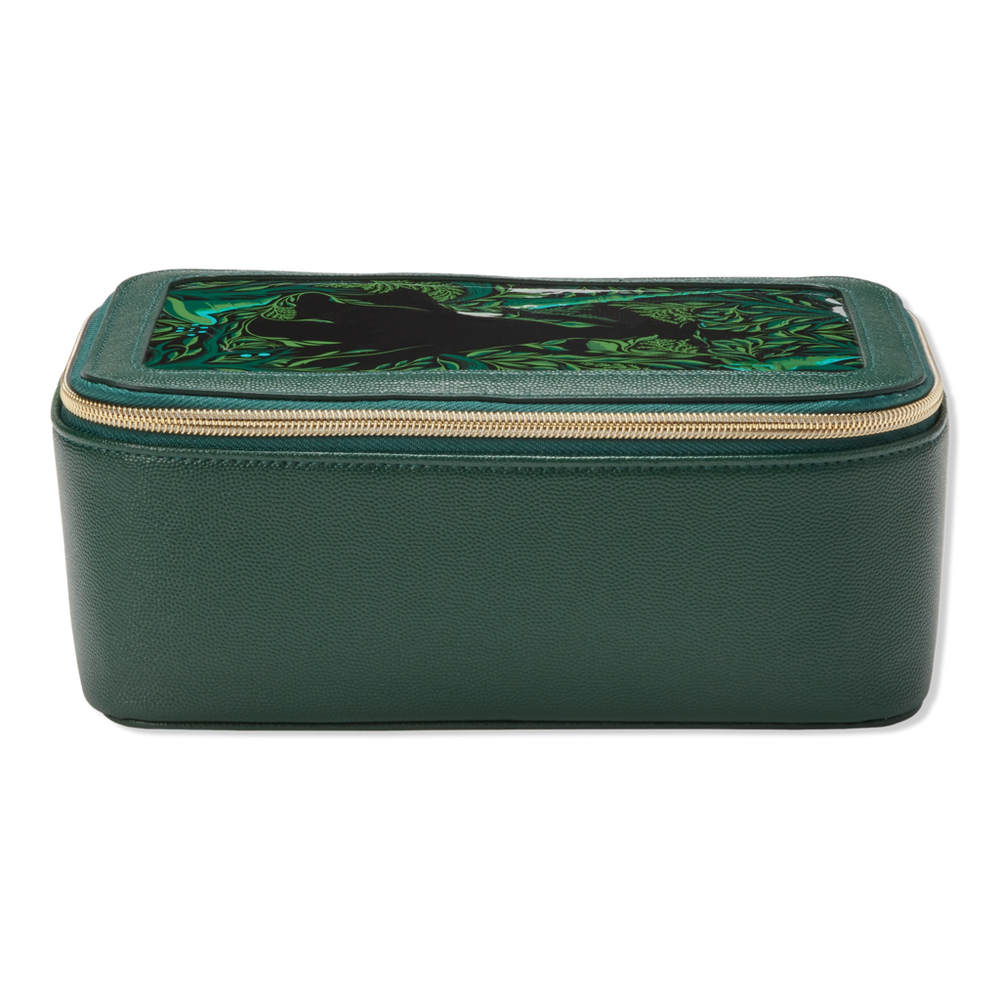 WICKED ORGZR WITH BRSH CMPT ELPHABA. Features: Elphaba print on clear PVC with bold green exterior. Gold-tone metal W emblem puller adds a magical touch. Elastic straps hold brushes and toiletries in place. Easy-to-clean black liningsleek, chic, and easy to clean. Compact 5.5" x 3.5" x 9" sizeperfect for vanities or travel. : :