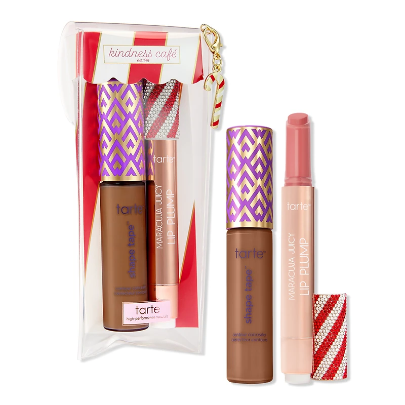 HL 25 WRD WNRS BSTSLRS ST G 53N DP. Benefits: 2 icons, 1 legendary set (to keep or gift). shape tape concealer + FREE limited-edition maracuja juicy lip plump. lip plump with limited-edition rhinestone cap & candy cane scent . America's #1 concealer brand* with full coverage, natural matte finish thats ideal for oily skin. bow & go wrapped in a clear reusable pouch & topped with candy cane charm. dermatologist tested. *Source: Circana, U.S. Prestige Beauty Total Measured Market, Makeup Sales, January-December 2024 combined. Features: 100% saw immediate hydration** & more plump lips*** with maracuja juicy lip plump. 100% said shape tape concealer doesnt crease or look cakey, leaving skin looking & feeling smoother****. 100% said shape tape concealer covers dark circles & undereyes look smoother****. **based on a clinical study of 30 subjects. ***based on a clinical study of 30 subjects after 10 minutes. ****based on a consumer panel study of 32 subjects. Key Ingredients: maracuja juicy lip plump. maracuja oil: rich in essential fatty acids & vitamin C for smoother, softer-looking lips. hyaluronic acid: moisturizes & plumps look of lips. 10+ superfruit complex: antioxidant-rich to help smooth, nourish & hydrate. shape tape shea & mango butters: moisturizes & conditions. licorice root: brightens & evens look of skin.
