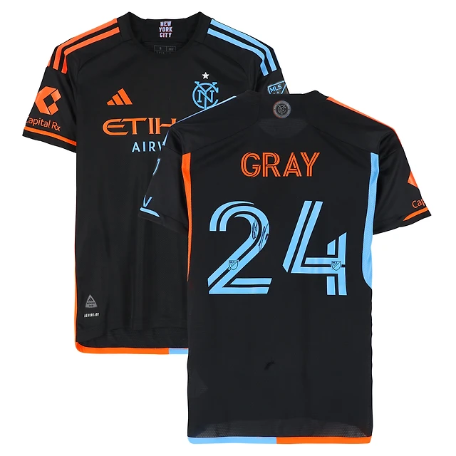 Tayvon Gray New York City FC Autographed Match-Used #24 Black adidas Jersey from the 2024 MLS Season - Size S