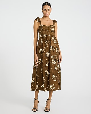 Floral Jacquard Sweetheart Sleeveless Corset Midi Dress