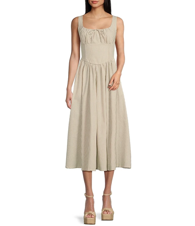 TCEC Stripe Print Square Neck Sleeveless Corset Midi Dress