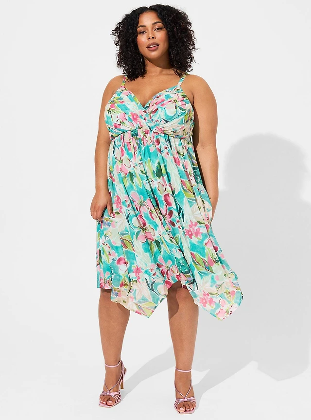 Ignite Evenings Plus Size Printed Sequin Tea Length Dress With Chiffon Overlay