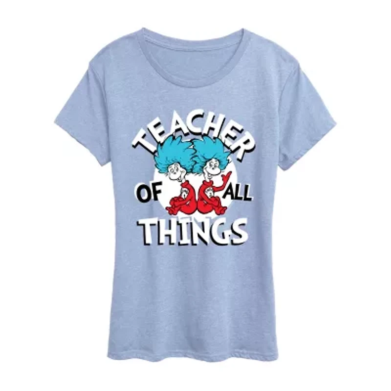 Teacher Of All Things Womens Scoop Neck Short Sleeve Classic Fit Dr. Seuss Graphic T-ShirtTeacher Of All Things Womens Scoop Neck Short Sleeve Classic Fit Dr. Seuss Graphic T-Shirt