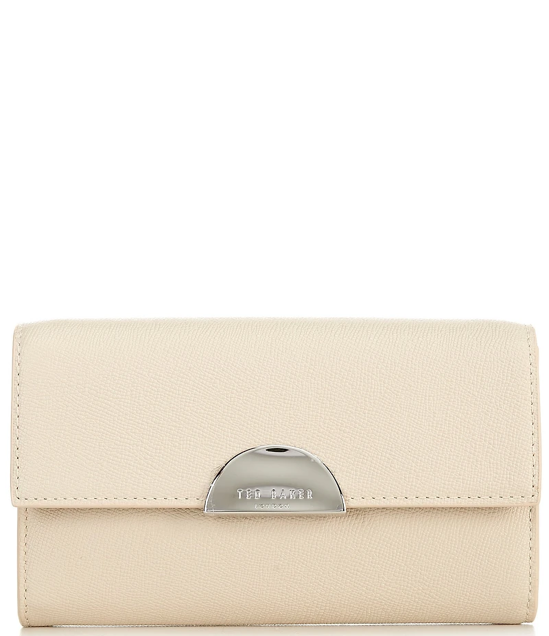 From Ted Baker London, this Luna Clutch Bag features: Sharpen your look with the Luna leather clutch by Ted Baker. This sleek clutch features a magnetic snap closure and a removable chain shoulder strap, making it perfect for sophisticated evenings and formal occasions. Designed to bring a refined touch to your ensemble, it offers just the right balance of style and practicality with its interior card slot and compact silhouette. Leather Fabric lining Fold over with hidden magnetic snap closure Interior Pockets: 1 card slot Removable chain shoulder strap approx. 19" drop Measures approx. 8.6" L x 2" W x 5.3" H Imported.