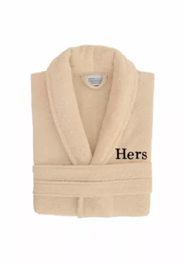 Terry Bathrobe Embroidered with Hers Design Bookman Font