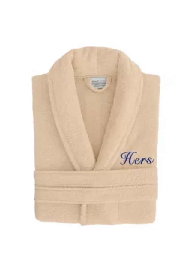 Terry Bathrobe Embroidered with Hers Design Script Font