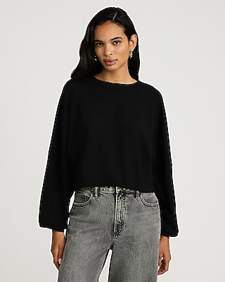 Textured Crew Neck Dolman Long Sleeve Tee