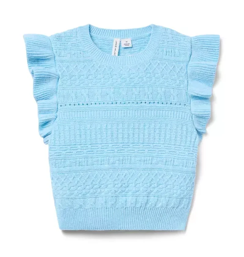 A top favorite to pair with every look. Our sweater in pure, soft cotton features a textured knit and ruffle sleeves too. 100% Combed Cotton Short Sleeve Now Including Tween Sizes Up To 16 Machine Wash, Inside Out, Gentle Cycle; Imported