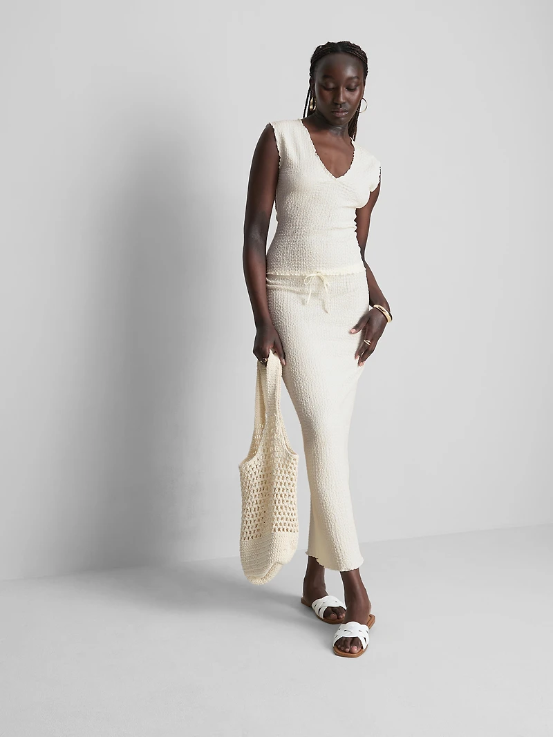 Textured tank top with a V-neckline and lettuce-edge trim