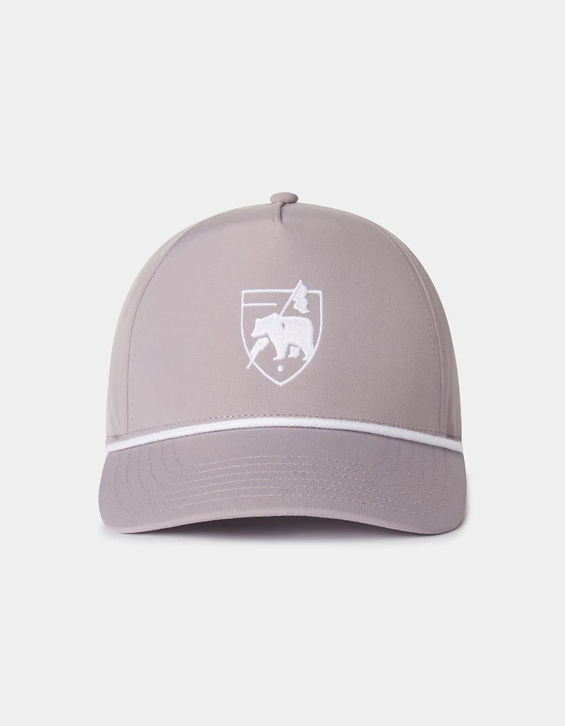 The Bogey Cap is a high-profile 5-panel hat designed for all-day wear, whether you're on the course or out and about. Made from 100% polyester performance UV fabric, it offers lightweight protection while maintaining a structured shape. Key features include a rope detail across the brim that adds a vintage touch, direct embroidery on the front, and a snapback closure for the perfect fit.