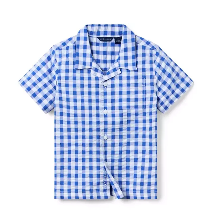 Our breezy cotton shirt is a sunny day staple in classic gingham seersucker. Featuring a relaxed collar and a straight hem silhouette. 100% Cotton Seersucker Short Sleeve Button Front Matching Family Styles Available Machine Washable; Imported