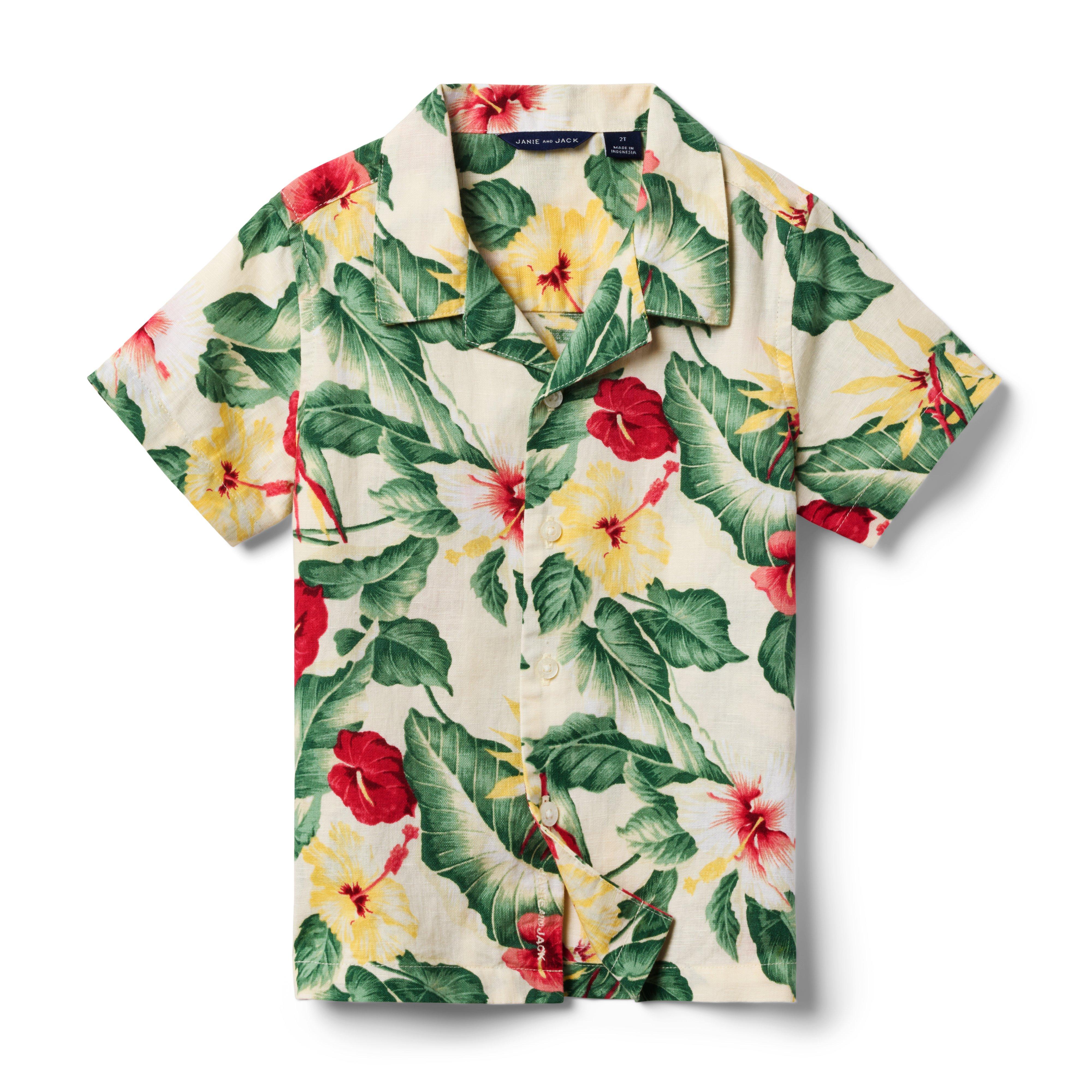 Our breezy cotton shirt instantly transports you to paradise with its tropical floral, relaxed collar and straight hem silhouette. Just add a sunny day. 52% Linen/48% Cotton Canvas Button Front Short Sleeve Matching Family Styles Available