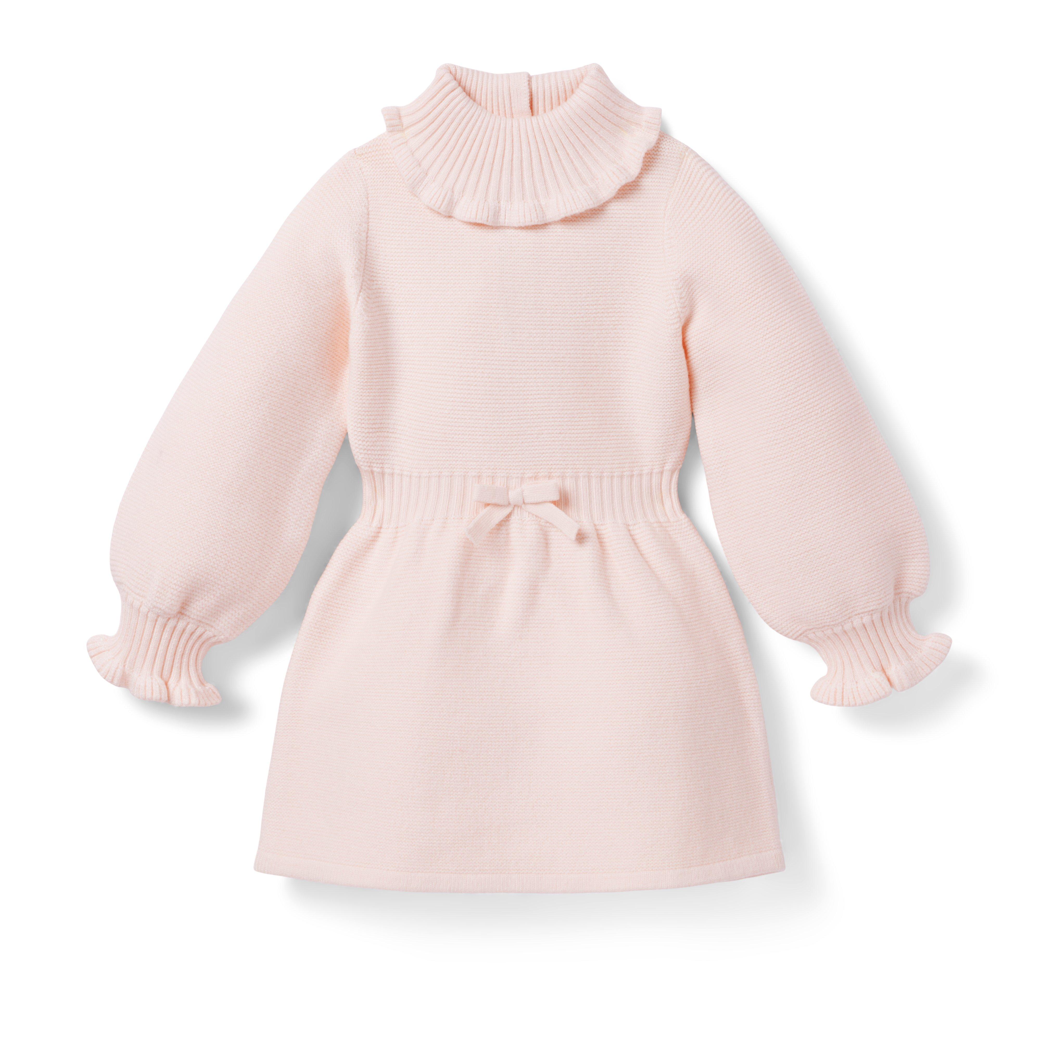 The coziest way to dress up any day. Made in a soft textured knit with ribbed details and a ruffled mock neck and cuffs. Plus, a bow at the waist for the perfect finishing touch. 49% Rayon/32% Polyester/19% Nylon Long Sleeve Above The Knee Length Button Back Now Including Tween Sizes Up To 18 Machine Wash, Inside Out, Gentle Cycle; Imported