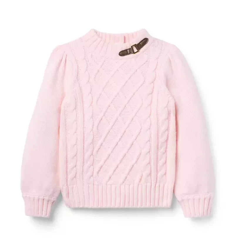 A cozy favorite, inspired by equestrian style. Our soft sweater features cable knit details, ribbed finishes and a bridle bit buckle at the neck. 100% Acrylic Long Sleeve Button Back Machine Wash, Inside Out, Gentle Cycle; Imported