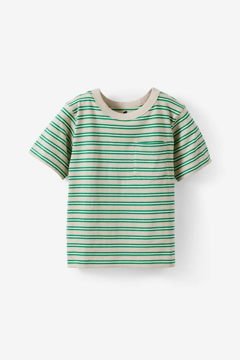 Everyday comfort with lots of personality. The Essential Short Sleeve Tee comes in a relaxed fit with a round neckline, short sleeves, and a chest pocket. Made from cool cotton, it's soft, breathable, and easy to wear while they play. The stripe print adds a fun pop of colour. Pair with trackies, this top really can do and go with everything.
