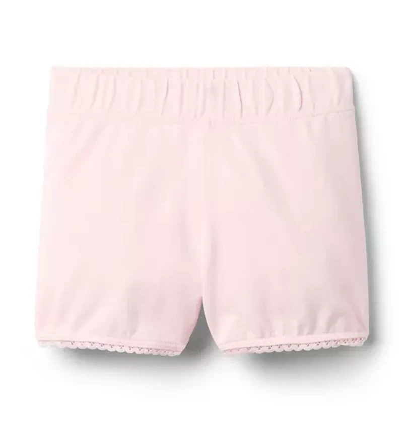 An effortless short in soft stretch, made for twirls, tumbles and cartwheels too. Detailed with lace trim for an extra special touch. 92% Cotton/8% Spandex Elasticized Waist Machine Washable; Imported
