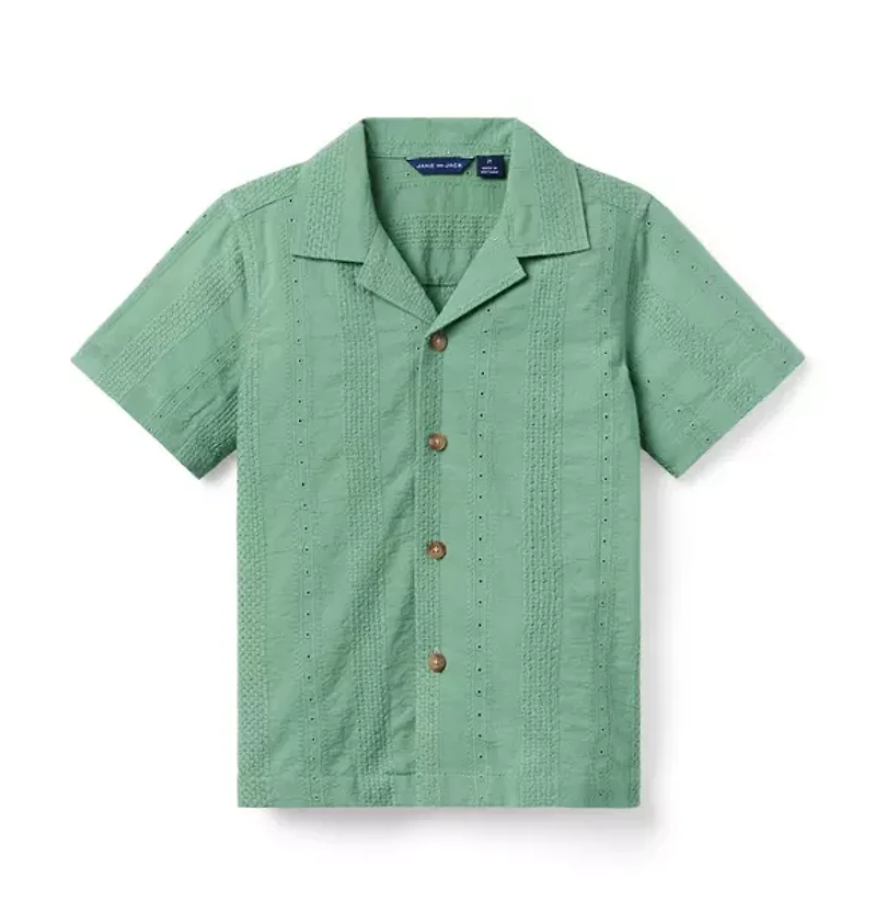 For getaways or any day, reach for our shirt in pure cotton eyelet. With allover striped details and a relaxed collar. 100% Cotton Eyelet Short Sleeve Button Front Machine Washable; Imported