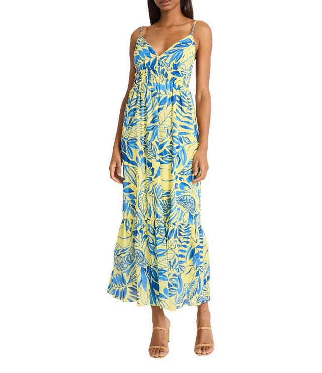 The Good Journey Printed Cotton Voile V-Neck Spaghetti Straps A-Line Midi Dress