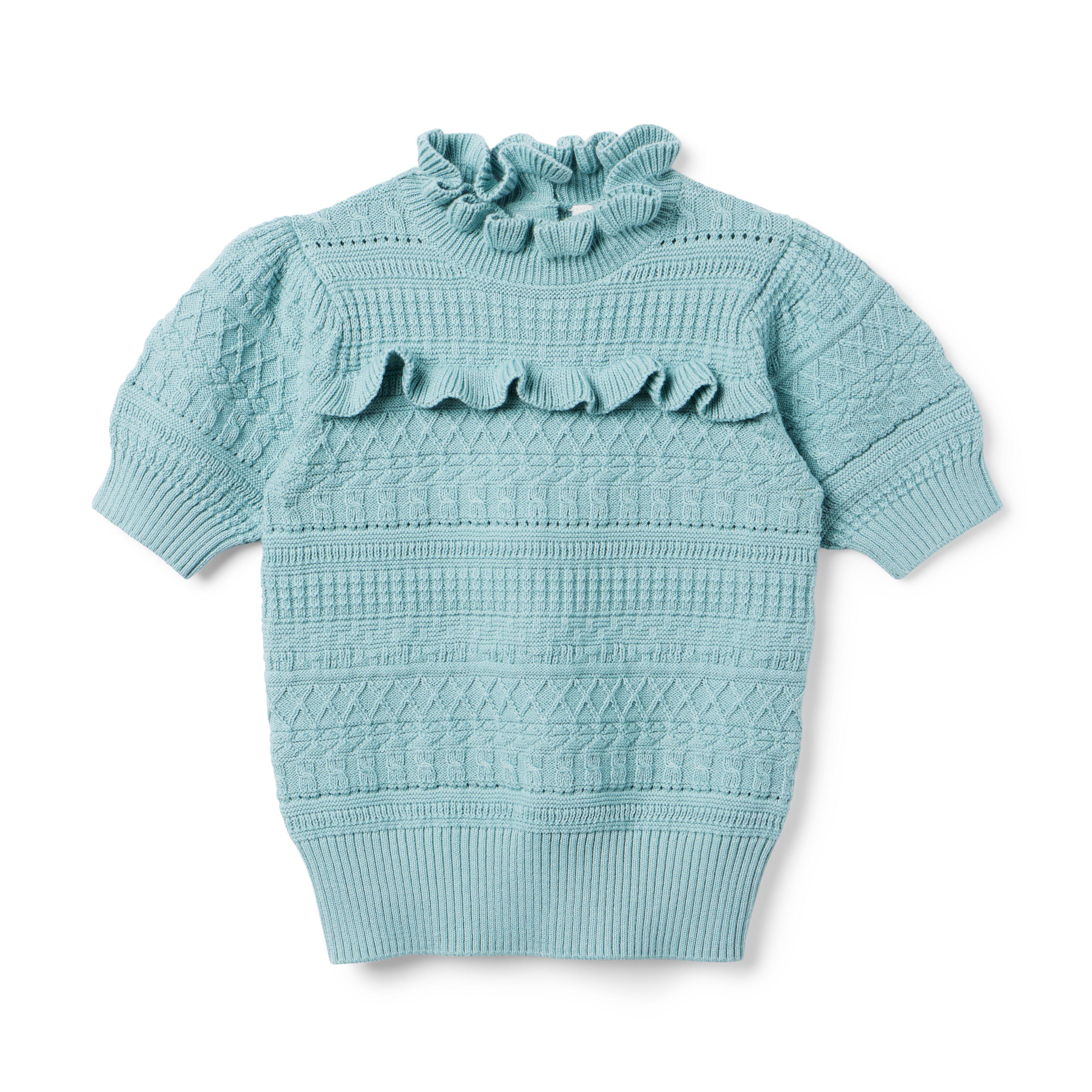 The perfect piece to pair with all their favorites. Our soft, textured knit top with ruffle details and puff sleeves instantly elevates any outfit. 60% Cotton/40% Polyester Short Sleeve Button Back Now Including Tween Sizes Up To 18 Machine Washable; Imported