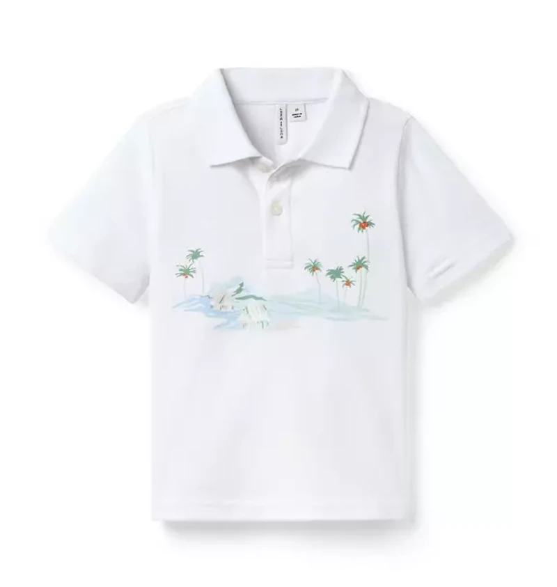 Our classic pique polo gets a vacation-ready twist with an island graphic. It's perfect for getaways or just because. 100% Cotton Pique Short Sleeve Half Button Placket Hem Vents Machine Washable; Imported
