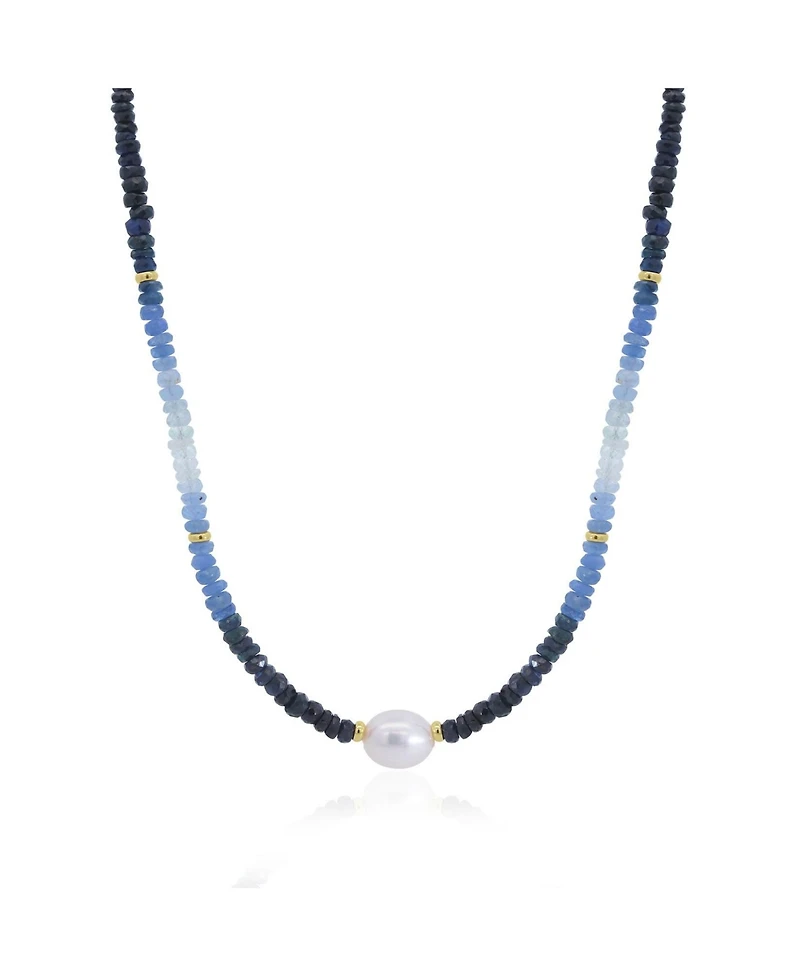 The Lovery Blue Sapphire Bead Pearl Necklace 14K Yellow Gold