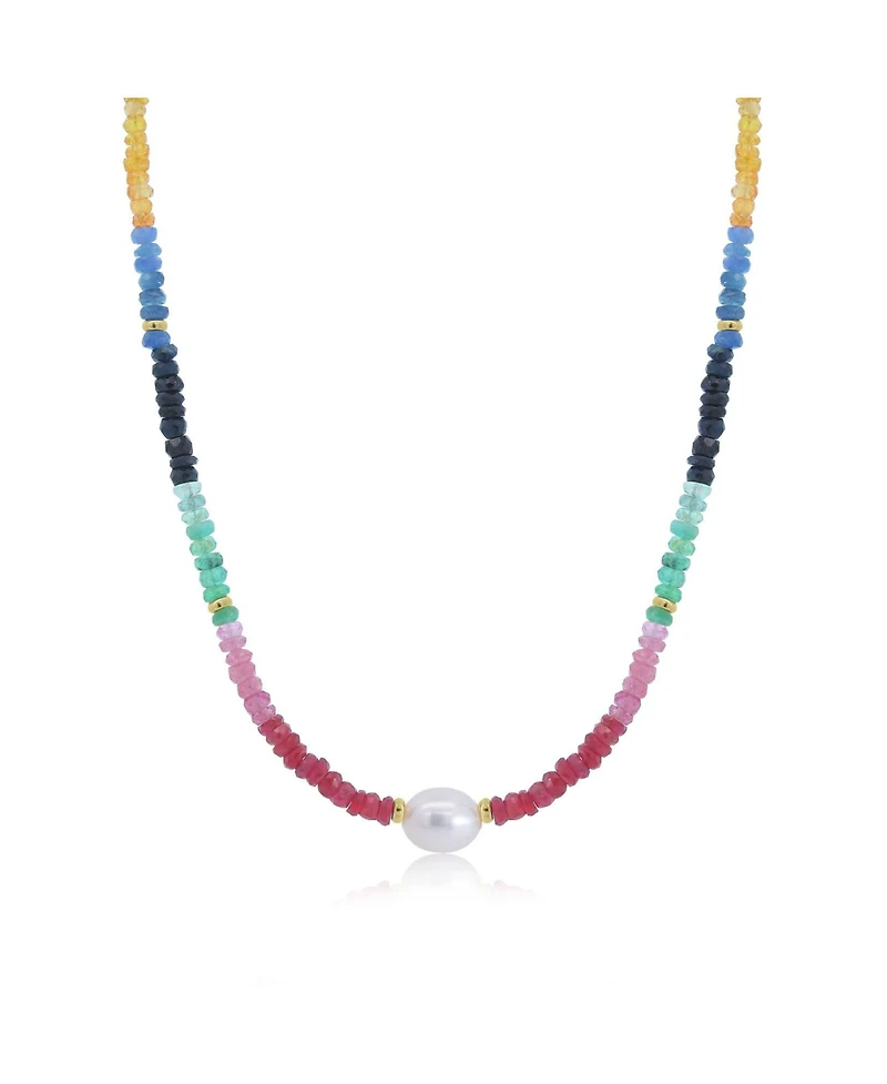 The Lovery Rainbow Gemstone Bead Pearl Necklace 14K Yellow Gold