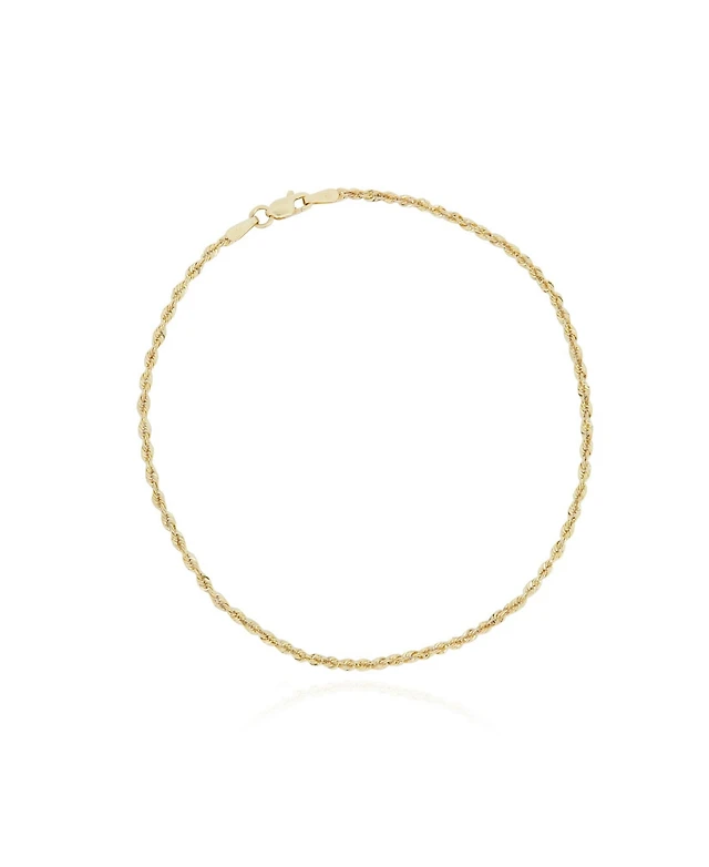 14K Hollow Gold Rope Chain Bracelet - 8"