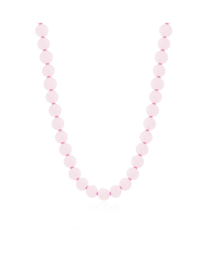The Lovery Rose Quartz Knotted Bead Necklace is in 14K Yellow Gold. Each Bead Measures: 8 millimeters - 0.31 inch. Chain length of 16 inches with an easy to use lobster clasp.