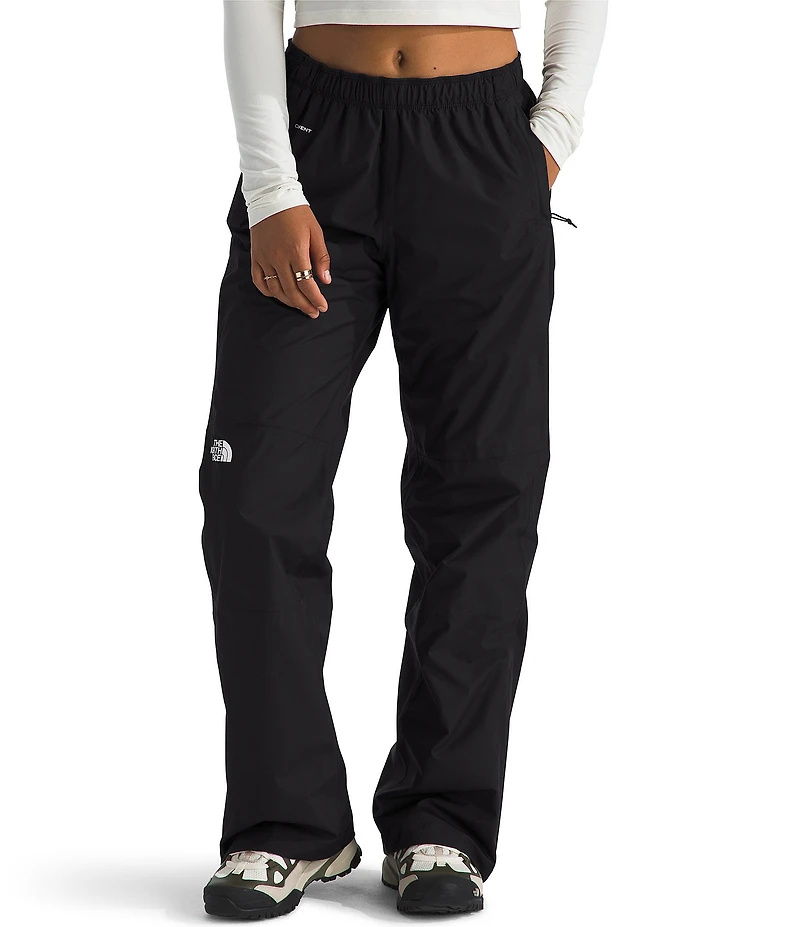 From The North Face, these pants features: DRYVENT™ 2L shell Rain pants silhouette Encased elastic waistband with an internal drawcord for adjustability Articulated knees for increased mobility Welt hand pockets Lower-leg zip for easy on/off over boots Heat transfer logo above right knee Hook-and-loop adjustable at leg opening Non-PFC DWR finish helps keep you dry Waterproof Relaxed fit Pull-on construction Approx. 31" inseam Machine wash Imported.