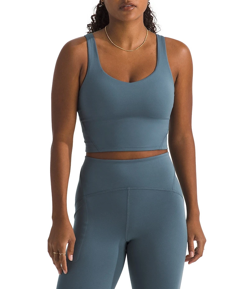 From The North Face, this top features: Fitted fit Tough enough to handle the outdoors or training in the gym Jaida bras feature our new buttery-soft recycled fabric You will love the comfort and versatility Made with ultra-soft, materials/FLASHDRY materials offer enhanced moisture management to help keep you comfortable Anti-odor technology helps keep the fabric feeling fresh Fully lined on the inside with sewn-in cups for a secure fit Longline silhouette hits just above the natural waist to provide extra coverage Soft V-neckline for a flattering and timeless look Shoulder seams feature low-bulk stitching for comfort next to skin Premium woven logo label on center back Tough enough for the outdoors Soft enough for indoors A moisture-wicking active layer engineered for everything from workouts to campouts and every moment in between This layer is crafted for comfort outside your comfort zone Pullover construction Body fabric: recycled polyester/ recycled elastane: lining recycled polyester/recycled elastane Machine washable Imported.