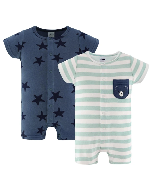 The Peanutshell Baby Boys Rompers - 2 Pack, Blue Stars