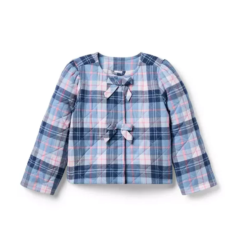 Elevate any look with this trending jacket in allover plaid. Featuring a quilted design in soft brushed twill for a cozy feel. Bow details tie it all together. 100% Cotton Twill; Lining: 100% Polyester; Filling: 100% Polyester Fully Lined Long Sleeve Snap Front Now Including Tween Sizes Up To 16 Machine Washable; Imported