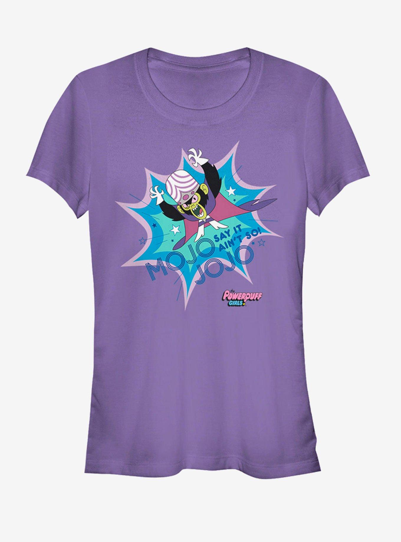 Take over Townsville with Mojo Jojo in this purple tee! From The Powerpuff Girls , this evil genius ape raises his arms triumphantly with the words "Say it ain't so!" on the front.