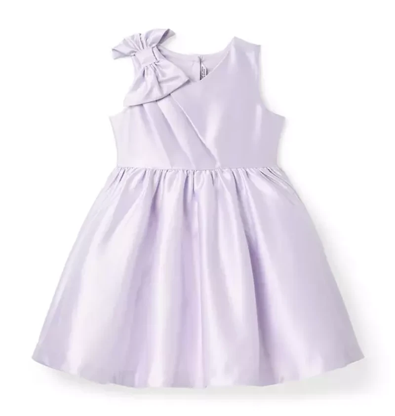 For best-dressed moments, stand out in shining satin. With a bow at the shoulder, pleated details and a tulle underskirt, this dress is something to celebrate. 95% Polyester Satin/5% Spandex; Lining: 100% Polyester Tulle Fully Lined Sleeveless Button Back Bloomer Included (Sizes Up To 18-24M) Machine Washable; Imported