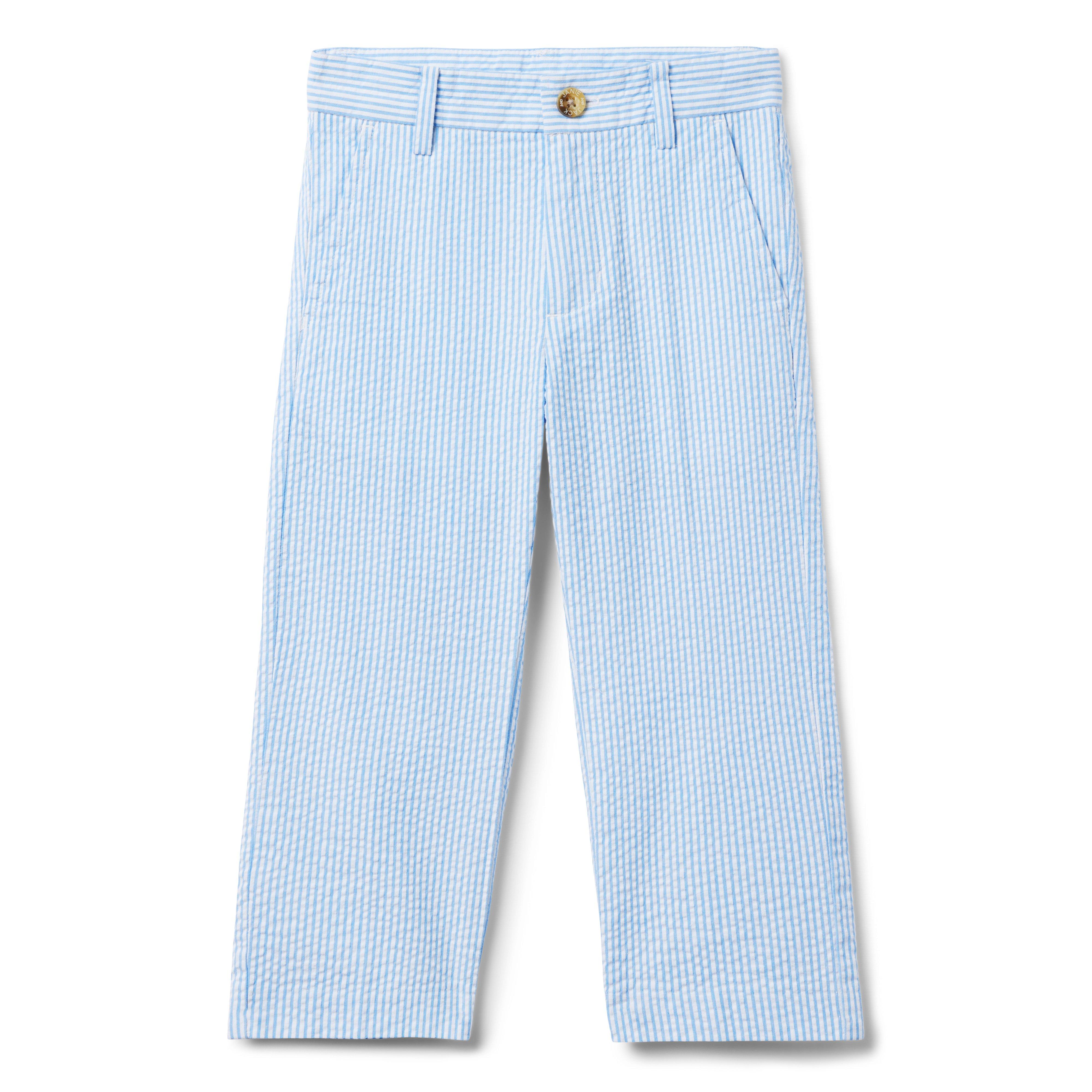 For sunny days and celebrations, our seersucker pant is the perfect choice. With a straight leg plus front and back pockets for the little things. 100% Cotton Seersucker Zip Fly With Button Closure Front And Back Pockets Adjustable Waist (Sizes 18-24M - 18); Elasticized Back Waist (Sizes 3-6M - 12-18M) Now Including Tween Sizes Up To 18 Machine Washable; Imported