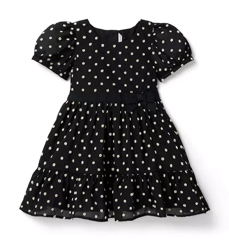 Puff sleeves and polka dots? Music to our ears. Featuring a ruffle hem and a grosgrain ribbon at the waist. 76% Nylon/24% Polyester; Lining: 100% Polyester Fully Lined Short Sleeve Button Back Bloomer Included (Sizes Up To 18-24M) Online Exclusive Machine Washable; Imported