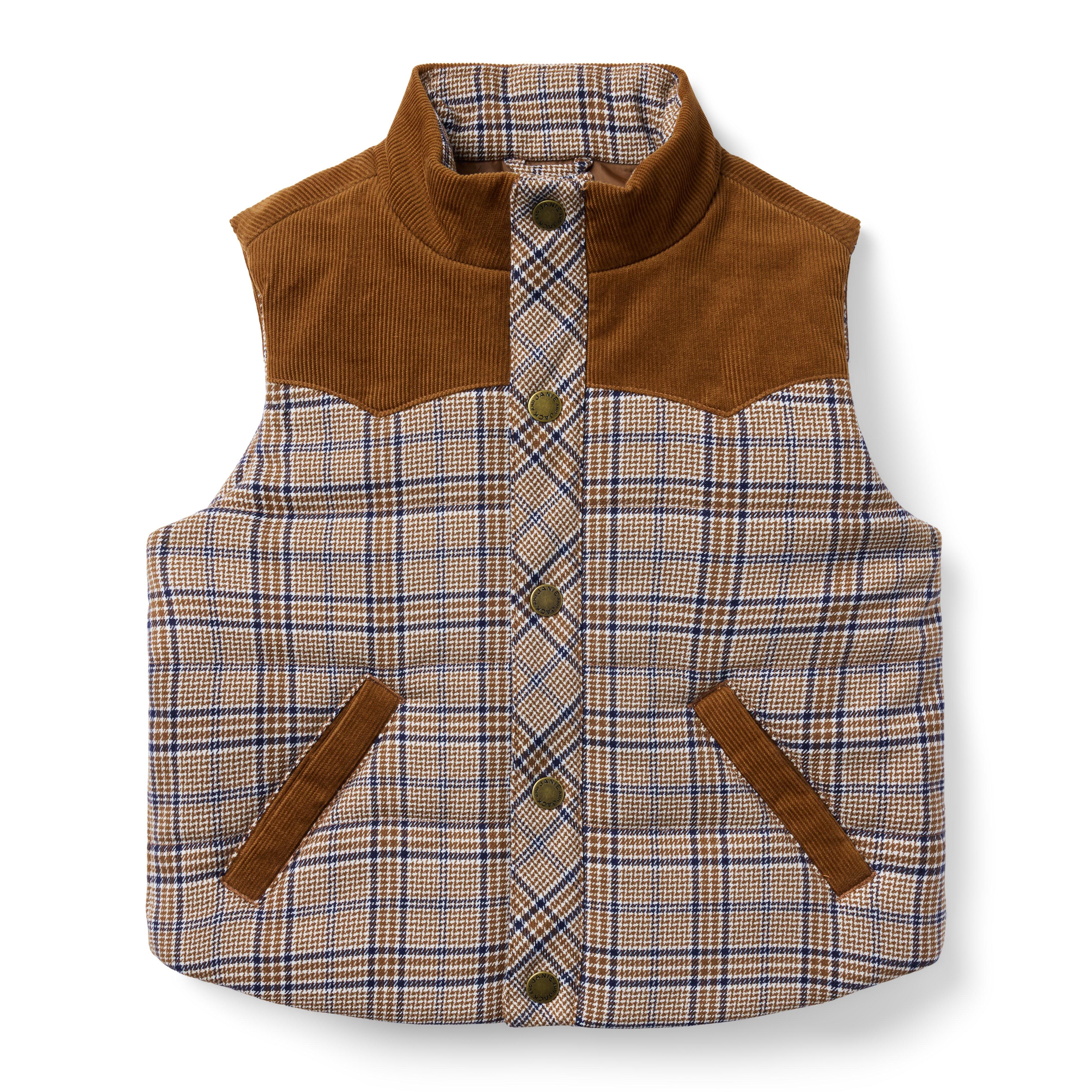 We’re heading west with our cowboy-inspired vest. It’s a wardrobe favorite that features allover plaid and cozy corduroy details. Upper: 98% Cotton Corduroy/2% Spandex; Lower: 64% Polyester/34% Rayon/2% Spandex; Lining: 100% Polyester Fully Lined Snap Front Front Pockets Machine Wash, Gentle Cycle; Imported