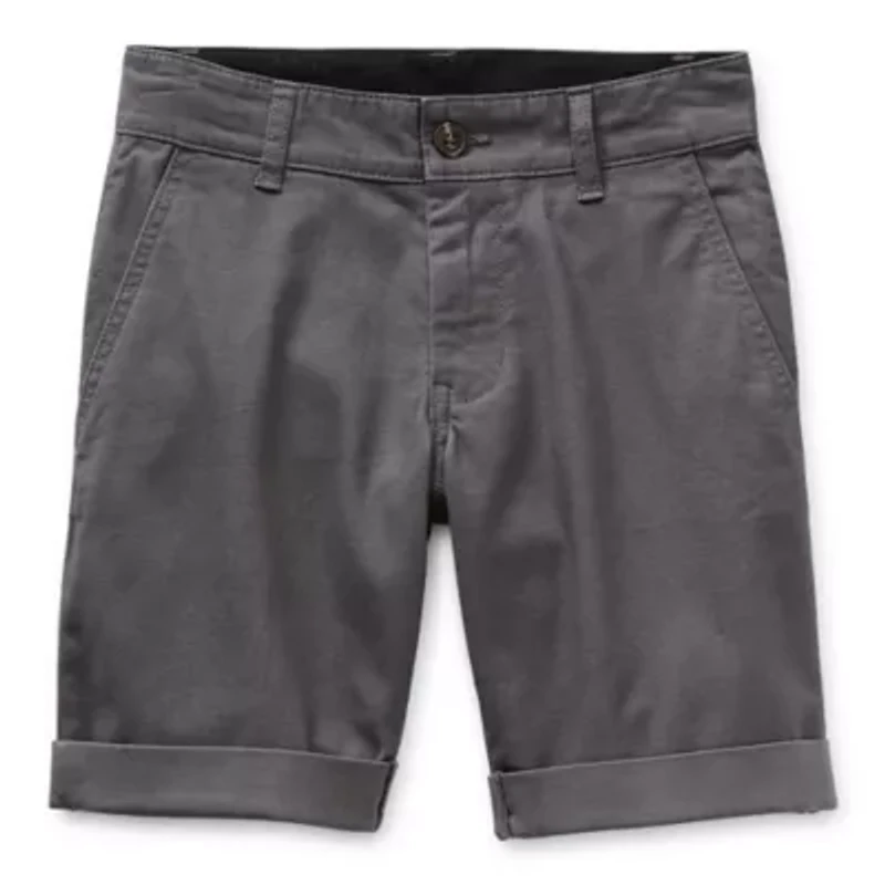 Give him a tailored look for sunny days with this pair of Thereabouts chino shorts. They are cut from stretch-cotton twill with a comfortable adjustable waistband, side and back pockets, rolled cuffs, and a button-zip fly. Your little or big boy will love pairing them with his favorite t-shirt and sneakers.